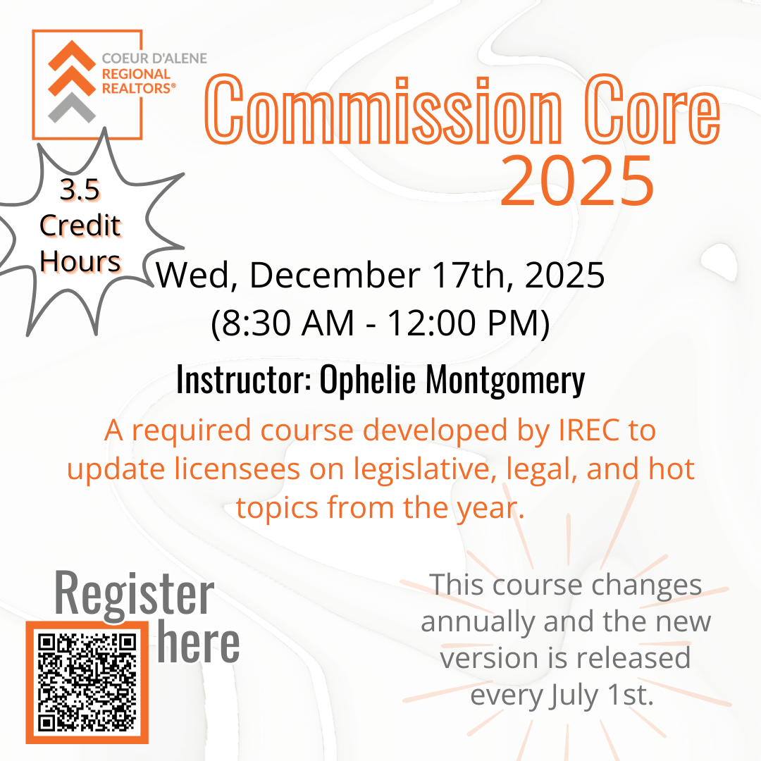 A required course developed by the IREC to update licensees on legislative, legal, and hot topics from the year. This course changes annually and the new version is released every July.
